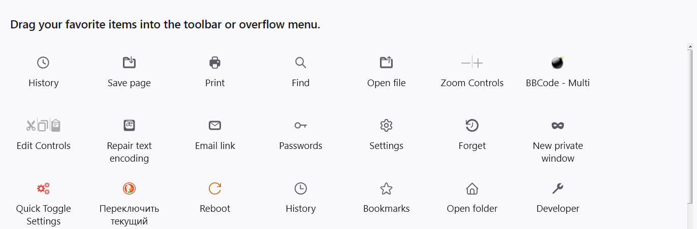По очереди перепробовал все вариантыgutasiho. у меня вообще нет этой кнопки. Нигде. Ни на панелях, ни в настройках.