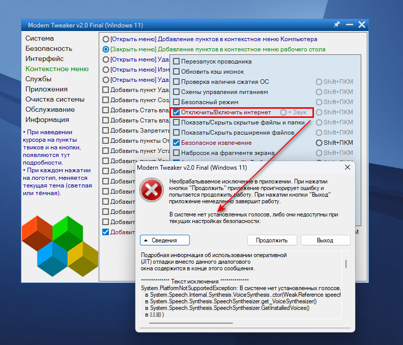 Modern Tweaker v2.1 Final от 07.12.2025: mail | google | upload.ee | тут | пароль: ru-board
