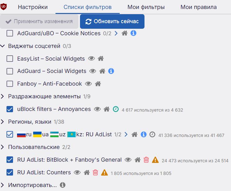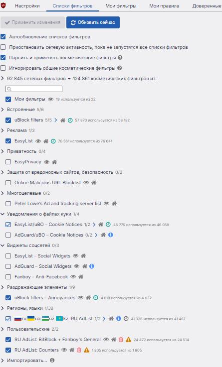 · Рекомендуемые наборы фильтров и дополнительных средств для пользователей uBlock Origin обновлено 09.02.25 изменения