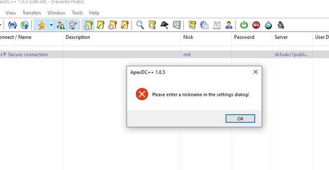 ApexDC++, хочет nickname но он указан: