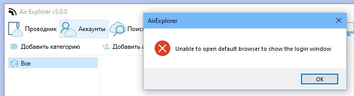 Никто с таким не сталкивался, пытаюсь добавить Дропбокс, выскакивает окно с ошибкой.