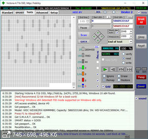 Advanced Member | Редактировать | Профиль | Сообщение | Цитировать | Сообщить модератору Ув.Sergei_Kazanskij Разобрал машину, перебросил шлейф проблемного диска на другой вход контроллера, отформатировал на низком уровне винчестер, воспользовался Вашей замечательной программой (Последней версией) в Windows X64, выставив режим "Remap" и получил абсолютно здоровый диск! При этом, Ваша программа вроде ничего и не исправляла. Во всяком случае, в логах этого нет. Может, это происходило как-то скрытно? Но главное- результат! Правда, программа "CrystalDiskInfo" по-прежнему показывает "тревогу" для этого диска, но я думаю, это ошибочно. Фирменная утилита "WD Data Lifeguard Diagnostic" тоже показала отличный результат для этого винчестера. А было, вот так: 10:55:52 : Get S.M.A.R.T. command... OK 10:55:53 : SMART status = GOOD 10:56:53 : Get passport... OK 10:56:53 : Recallibration... OK 10:56:53 : Starting Reading, LBA=0..7814037167, FULL, sequential access, timeout 10000ms 16:36:06 : Block start at 3788425216 (1,9 Tb) Error: UNCR 20:16:41 : Block start at 5860532224 (3,0 Tb) Error: IDNF 20:16:41 : Block start at 5860534272 (3,0 Tb) Error: IDNF 20:16:41 : Block start at 5860536320 (3,0 Tb) Error: IDNF 20:16:41 : Block start at 5860538368 (3,0 Tb) Error: IDNF 20:16:41 : Block start at 5860540416 (3,0 Tb) Error: IDNF 20:16:41 : Block start at 5860542464 (3,0 Tb) Error: IDNF 20:16:41 : Block start at 5860544512 (3,0 Tb) Error: IDNF 20:16:41 : Block start at 5860546560 (3,0 Tb) Error: IDNF 20:16:41 : Block start at 5860548608 (3,0 Tb) Error: IDNF 20:16:41 : Block start at 5860550656 (3,0 Tb) Error: IDNF 20:16:41 : Block start at 5860552704 (3,0 Tb) Error: IDNF 20:16:41 : Block start at 5860554752 (3,0 Tb) Error: IDNF 20:16:41 : Block start at 5860556800 (3,0 Tb) Error: IDNF и т.д. Все остальные блоки, были "Error" | Всего записей: 1348 | Зарегистр. 08-02-2002 | Отправлено: 18:30 15-01-2019 | Исправлено: Levabati, 18:44 15-01-2019 |