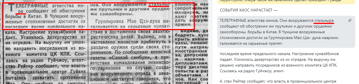 Platinum Member | Редактировать | Профиль | Сообщение | Цитировать | Сообщить модератору greeple ну так маякни им, пусть поправят.. я не думаю, что все эти миллионы листов "в цифре" кто-то из корректоров реально проверял..) что до "косяков" - не удивлён, та же байда со сводками совинформбюро, военными архивами, да и вообще с любыми массовыми архивами после оцифровки.. это ж не человеки врукопашную вбивали, а "ИИ", тупая "железяка" не соображает, шо типографский набор с плашками отличается от вордовского с колонками, но в целом не врёт, и то хлеб..)) FiLinX Цитата: там не только по Известиям | "мопед не мой, я только разместил объяву".. короче, с этим не ко мне, заголовок - оригинальный с хобота, я менять не стал, цитата всё же..) да и на странице там сообщение начинается с "к 25 съезду кпсс.." в смысле - "к 108-й годовщине известий".. ну и т.д..)