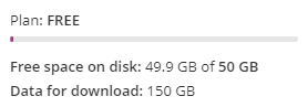 50 гигабайт бесплатное пространство, ограничение 150 GB трафик, полагаю месячно. Не можете делиться ссылками. Для хранения данных годится.