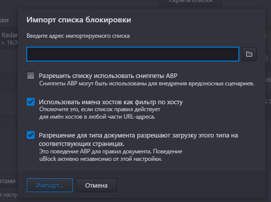 RU AdList | Редактировать | Профиль | Сообщение | Цитировать | Сообщить модератору Feldsher Встроенный блокировщик Vivaldi представляет собой весьма архаичный продукт, который не поддерживает синтаксис uBlock Origin или AdGuard, поэтому какие-то продвинутые фильтры загружать в него бесполезно, с ними он работать не сможет. Насколько я понимаю, он даже новейшего синтаксиса ABP не понимает. И ни один из авторов фильтров этот блокировщик не поддерживает. Единственное, в чём он был ранее замечен, это в конфликтах, которые он создавал, мешая работать расширениям, блокирующим рекламу. Поэтому самое лучшее, что можно сделать, это полностью отключить его и использовать отдельное расширение. Но если у вас самые непритязательные запросы, и работа встроенного блокировщика Vivaldi вас устраивает, то попробуйте поискать в нём возможность добавления собственных правил. На указанном сайте используется самый простой детектор, и для его нейтрализации достаточно будет добавить исключение > Код:| @@||pagead2.googlesyndication.com/pagead/js/adsbygoogle.js|$xmlhttprequest,domain=newsharsh.com |