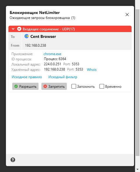 Один адрес - это multicast DNS, второй - твоя локалка от маршрутизатора. Что не так то? Если трансляции и т.п. не нужны, то можно заблокировать.
