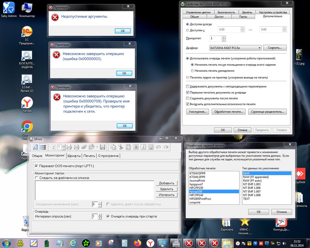 1.Принтер SPrint Redirector должен быть в автономном режиме ВСЕГДА. Если он у вас не в автономном то переведите его в него.