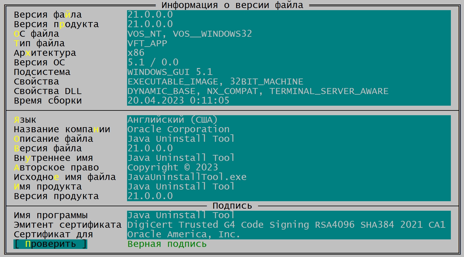 NTFS File Information v5.6.2.4040 для Far3, информация о версии JavaUninstallTool.exe: