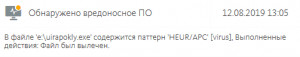 У Авиры не только в облаке детект HEUR/APC есть и другие. Причем есть конкретные и с приставкой Cloud. Но такой детект с приставкой Cloud только при запуске.