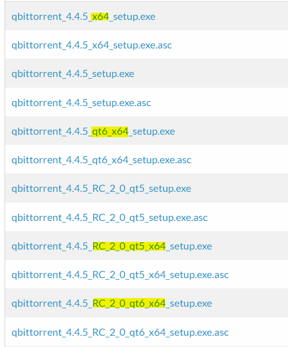 В предыдущем релизе 4.4.4 тоже набор: https://sourceforge.net/projects/qbittorrent/files/qbittorrent-win32/qbittorrent-4.4.4/