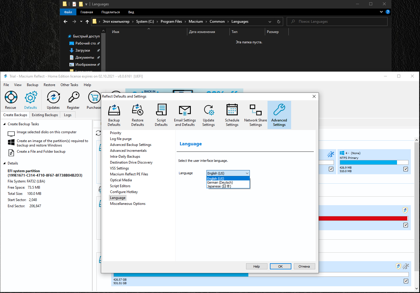 Русский языковый файл для Macrium Reflect 8.0.6161 x64/x86