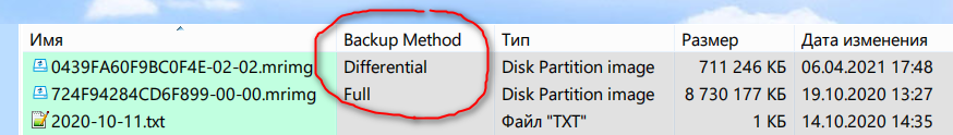 Знал, но забыл, что Macrium Reflect добавляет в проводник Windows столбцы "Backup Method" и "Backup Comment".