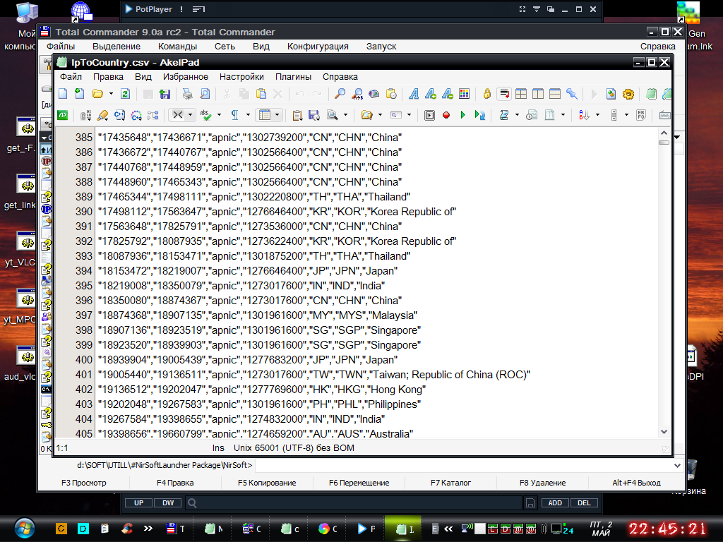 Silver Member | Редактировать | Профиль | Сообщение | Цитировать | Сообщить модератору Wu Tang Цитата: PH хочет качать такую-то базу с такого то сайта | во млин, сейчас тоже сам обнаружил, что там >Инструменты >Сетевые инструменты есть пункт >Обновление базы GeoIP.. попробовал - https://a.i.getapic.me/lkr5.jpeg а в ответ обломс да) - https://a.i.getapic.me/lkr9.jpeg видел, что PH хочет максминдовскую GeoLite2 и я полез зачем то изучать дебри максминдовского сайта, но толком ничего так и не вкурил там.. задумался, - а как же это у меня в PH, хоть и неможет обновить базу, но страны то определяет как то? значит и база эта где то имеется в компе.. и я нашёл! ) я то в прошлый раз смотрел в свою директорию портабле софтин, и там в PH папке не видел баз да.. но тут я вспомнил, что я ж когда то с пару лет назад - инсталлировал PH ну и точно - и настройки его в роуминговой аппдате - там и обнаружился файл гео-базы) только он не csv формата, а mmdb и похоже что не обновляет базу из программы потому, что имя базы в урле сейчас другое! ну, у меня в аппдате лежит файл GeoLite2-Country.mmdb - от 5 октября 22 а с максминда щас урл с добавкой IPv4 в имя - https://cdn.jsdelivr.net/npm/@ip-location-db/geolite2-country-mmdb/geolite2-country-ipv4.mmdb положил этот файл в папку портабельного PH (в нём же небыло ваще), запустил прогу - и вуаля - есть Страны ) но млин, бывшая у меня в инсталлированном PH база от 22 года - весит 5.5 мегабайт, а свежая скачанная GeoLite2 IPv4 - 3.5 весом.. млин.. скачал тогда не просто геолайт2, а как подразумевается типа склейка из многих - GeoLite2 + GeoFeed + Whois + ASN - смотрю вес, а он ваще оказался лишь 2.9 мегабайт да млин - как так то?? скачал тогда по опыту с csv и склейку DB-IP Lite + GeoFeed + Whois + ASN - он оказался весом 3.8 мегабайта проверяю портабельный PH уже с этим файлом - и всё Ок, Страны кажет) копирую тогда этот файл в аппдату инсталлированного PH, а бывший убираю.. запустил - и облом блин - не найдена пишет база - https://a.i.getapic.me/lkrh.jpeg заглянул в settings.xml - и увидел там строку указывающую на старое имя файла базы ну и я там же в иксемеле этом подправил ту строчку на имя нового dbip-geo-whois-asn-country-ipv4.mmdb запустил ещё раз - но увы, оно теперь уже просто оставляет пустым таб Страны (( меняю файл на склейку геолайт+, правлю вновь xml, запускаю - и снова облом (( тогда я в xmlе возвертаю старое имя GeoLite2-Country.mmdb и переименовываю в него файл скачанной склейки, запускаю - и снова облом (( мдяя.. пришлось вернуть назад тот файл от 22 года - с ним вновь Страны начало показывать.. но блин странно - а как жешь тогда у меня в портабельном PH, Страны то показывает? ведь там лежит DB-IP+ склейка - https://a.i.getapic.me/lkrp.jpeg притом в его ProcessHacker.exe.settings.xml - в строке так и осталось прописано то старое имя - https://a.i.getapic.me/lkrl.jpeg какая то фигня короче непонятная.. наверное что то в реестре прописанное, не позволяет инсталлированному чуять новые файлы баз.. причём переименовывание нового под старое имя - не помогает | Всего записей: 3223 | Зарегистр. 05-05-2010 | Отправлено: 11:34 03-05-2025 | Исправлено: FiLinX, 11:52 03-05-2025 |