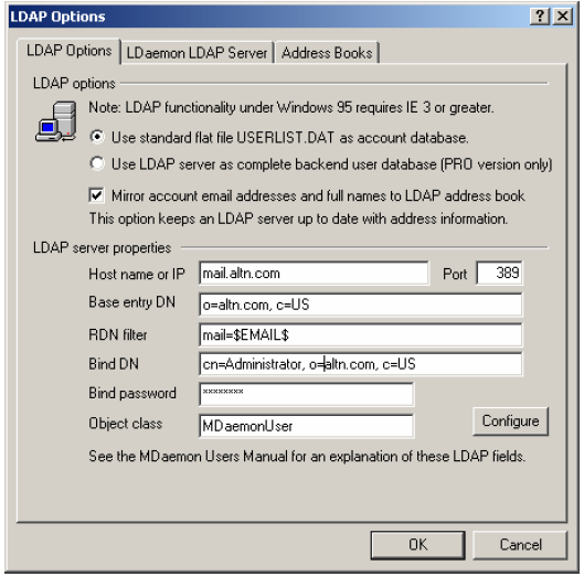Platinum Member | Редактировать | Профиль | Сообщение | Цитировать | Сообщить модератору Grower LDAPWC.sem , если есть такой файл в каталоге Mdaemon\app, то удали, хотя демон и так его вроде удалил. Цитата: Там 3-е поле - Полное Имя администратора, введенное при установки MDAEMON 5-е поле - Электронный адрес администратора. Но они же всегда совпадают! Email администратора - это и есть логин администратора. | И что тебя смущает? Полное Имя администратора ? Это неверная инфа, на скрине у тебя написано Administrator's name. Если при установке Mdaemon имя учетки админа вводил типа vasya, то так его и введи - vasya, емайл админа - vasya@domain.ru Если что-то не работает, то админ смотрит все логи, о чем я уже говорил. И таки да, проверь порт, который указал для Ldaemon, может занят. netstat -ab | findstr "389" Код: при запуске MDaemon как службу постоянно вываливается CFENGINE.EXE was not running. It was restarted. Отключите DEP и всё без проблем заработает! | в винде 2003 это было необходимо, возможно и в поздних требуется, отключи.