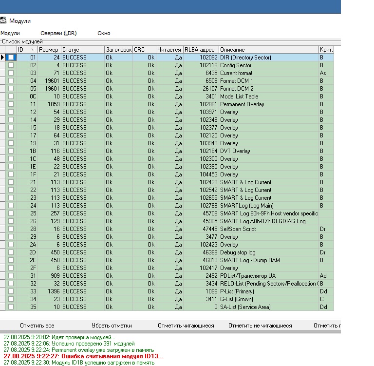 пока делаю служебку,проблема не могу найти на сайтах (https://files.hddguru.com/) модуль ID13 и ID107.Может кто поделится. Всё сливают на этот хард, но кроме этих модулей.Заранее благодарен.