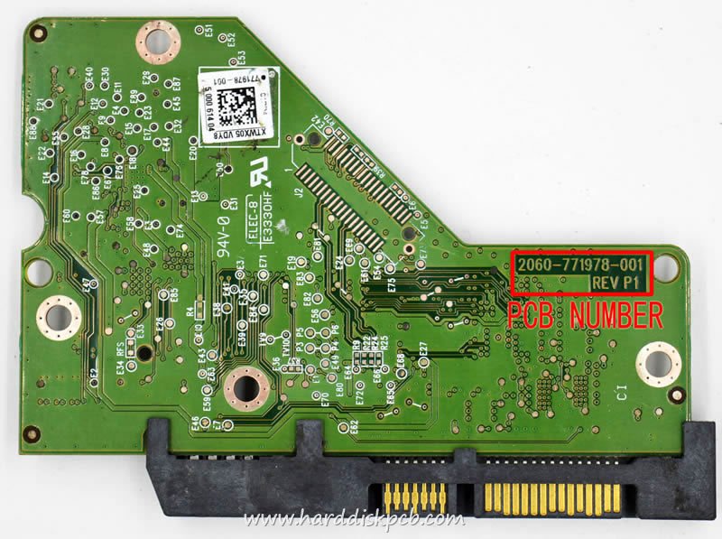 На совсем старых HDD: пример AC28400-00RTT2: PCB 60-600791-002, и тд. до WD95044A: