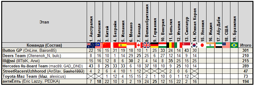 • В форме просьба указывать имена гонщиков, полные, латинскими буквами, как в приведенном ниже списке