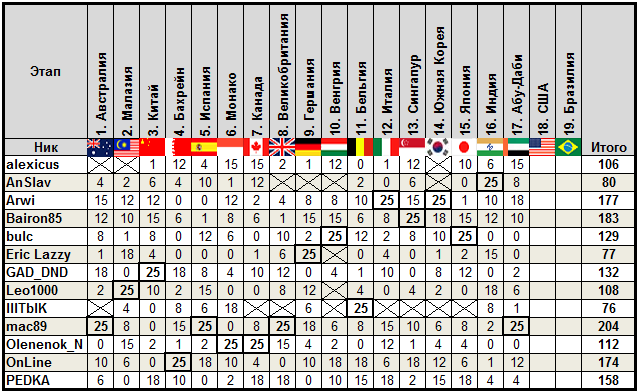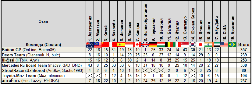 • В форме просьба указывать имена гонщиков, полные, латинскими буквами, как в приведенном ниже списке