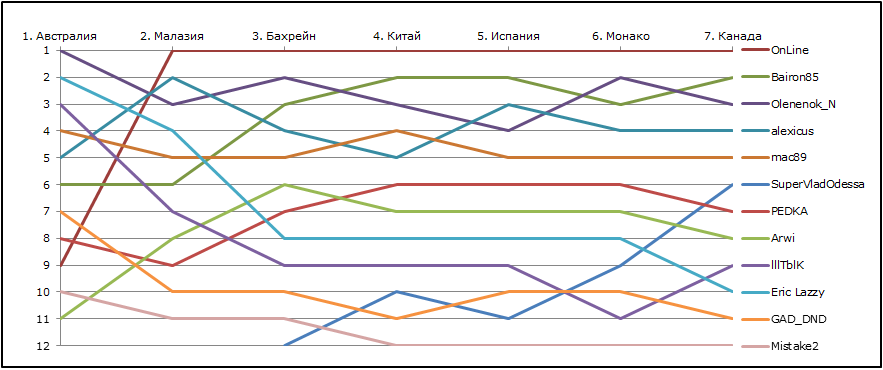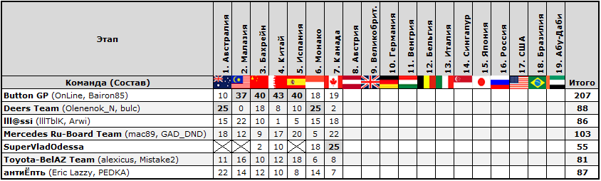 • В форме прогнозов необходимо указывать имена гонщиков, полные, латинскими буквами, как в приведенном ниже списке.