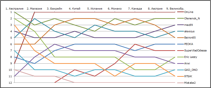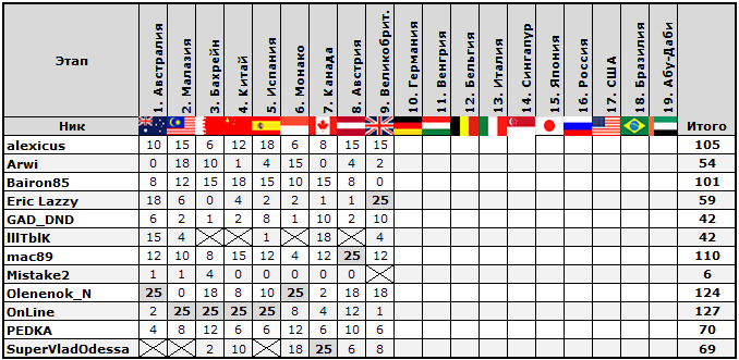 • В форме прогнозов необходимо указывать имена гонщиков, полные, латинскими буквами, как в приведенном ниже списке.