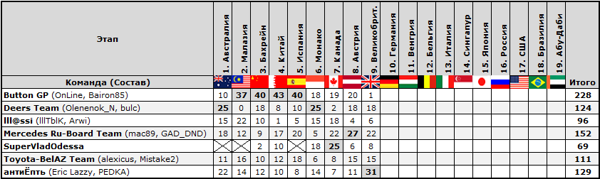 Список гонщиков: